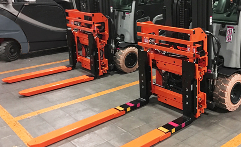 調距叉廣泛應用于第三方物流。裝卸時搬運各種托盤、盒子、籠子和空運集裝箱,負載貨物的尺寸變化較大。叉車租賃車隊必須全天候進行多種工況的應用。